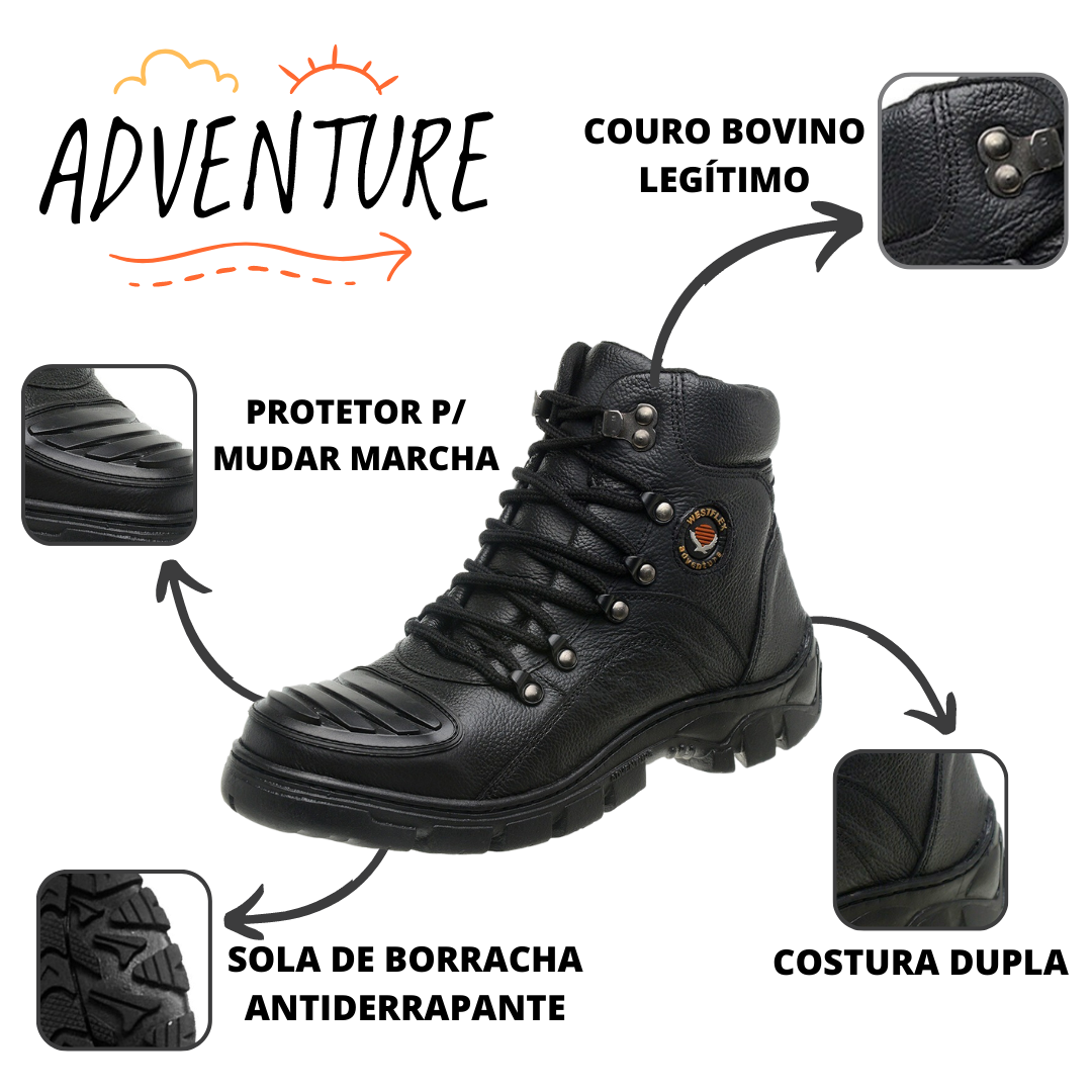 Ideal para você que vive no meio urbano e precisa ir de moto trabalhar ou viajar. Possui proteção de pedal para mudar marcha sem estragar a sua bota. Conta com material macio e palmilha que amortece os impactos, podendo ser usado por longo período sem perder o conforto.